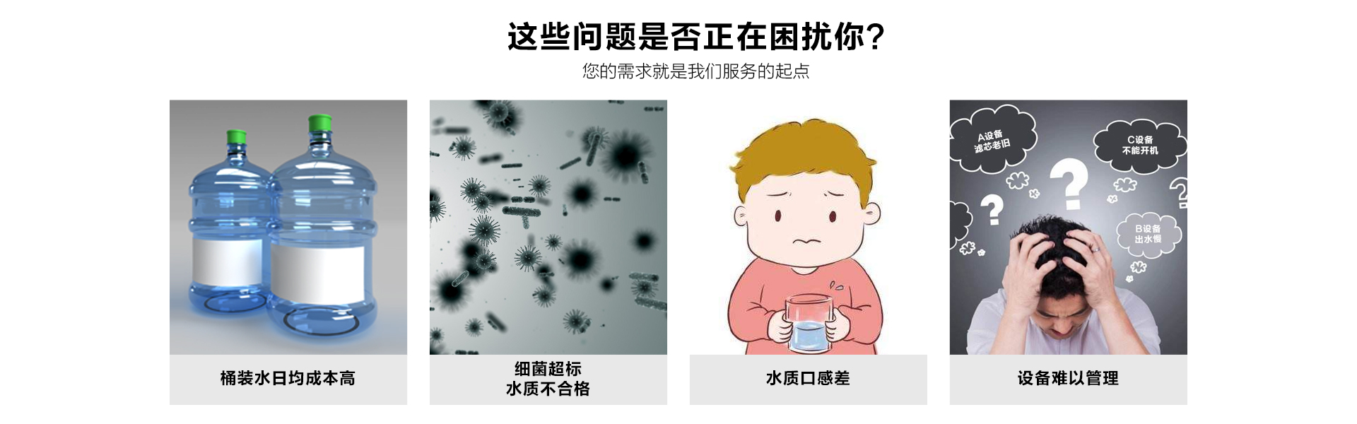 不同的飲水點可根據(jù)實際使用情況,選擇租賃管線機或飲水設(shè)備或開水器,使用戶能喝上開水、溫開水、純凈水等,來滿足不同場景的飲水需求;